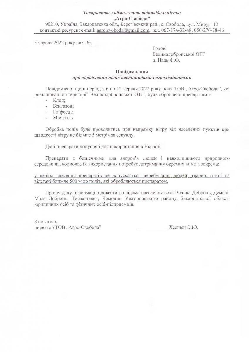 • Вих. лист №б/н. від 03.06.2022 року