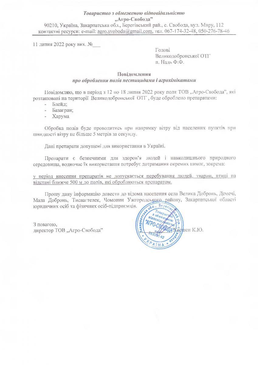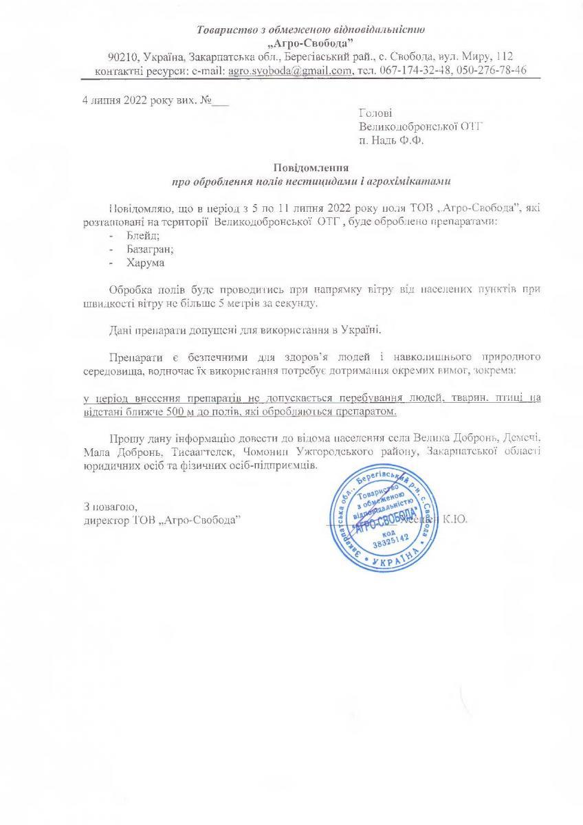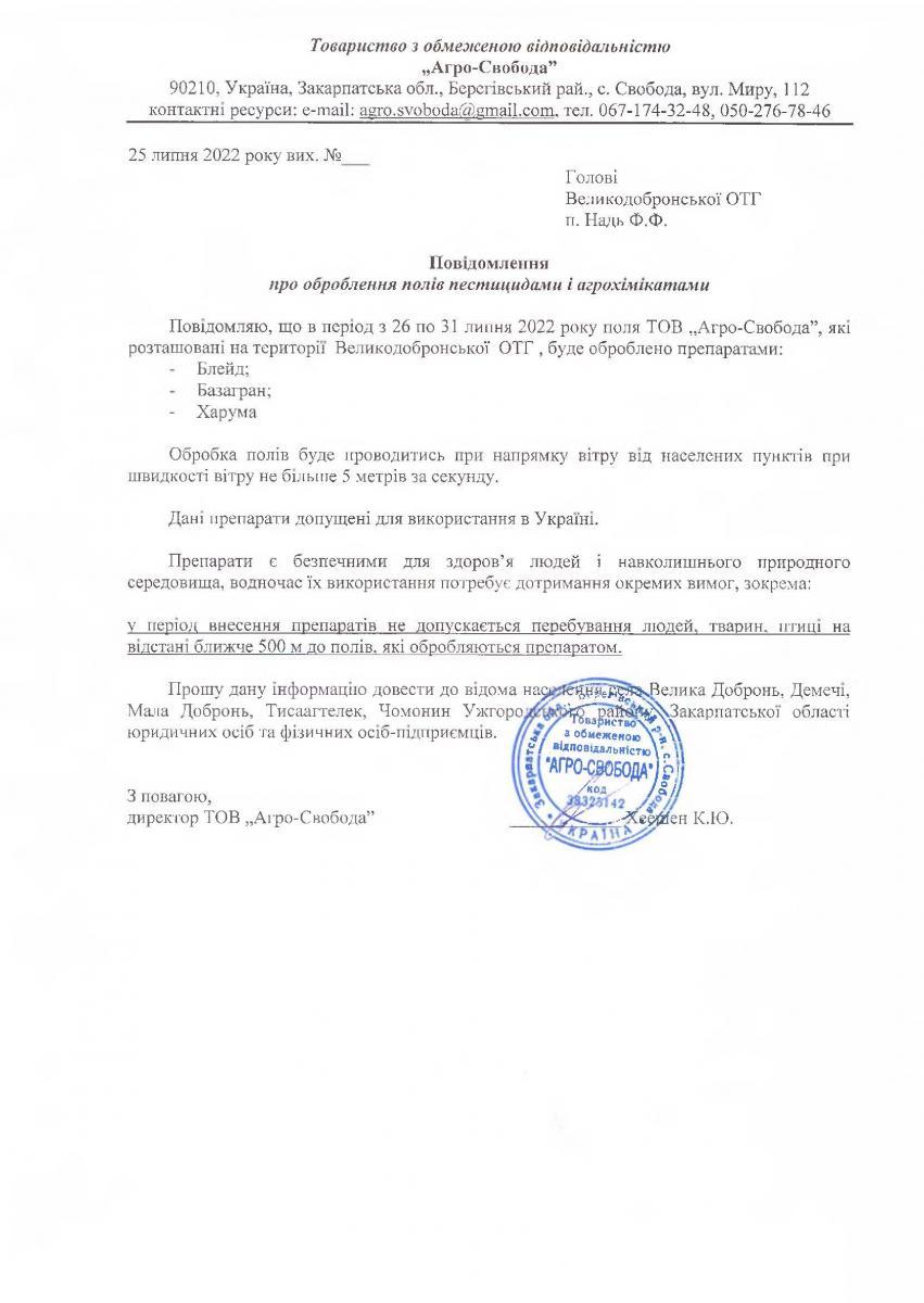 • Вих. лист №б/н. від 25.07.2022 року