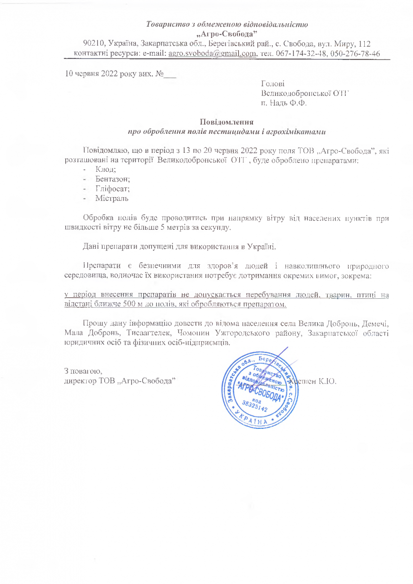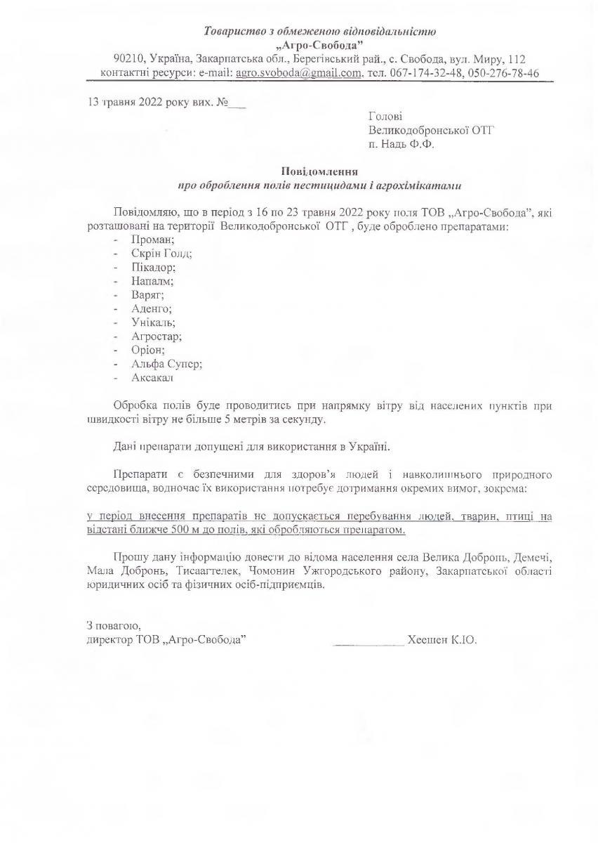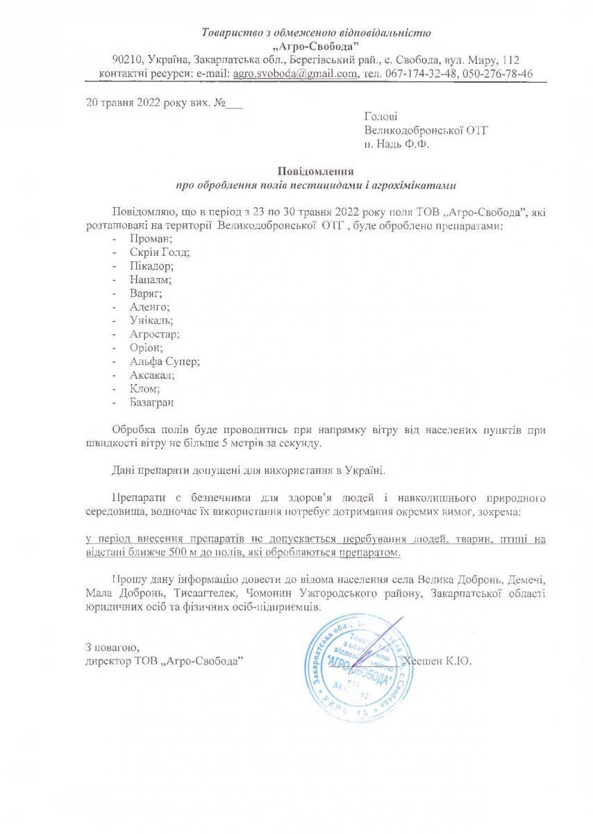 • Вих. лист №б/н. від 29.04.2022 року