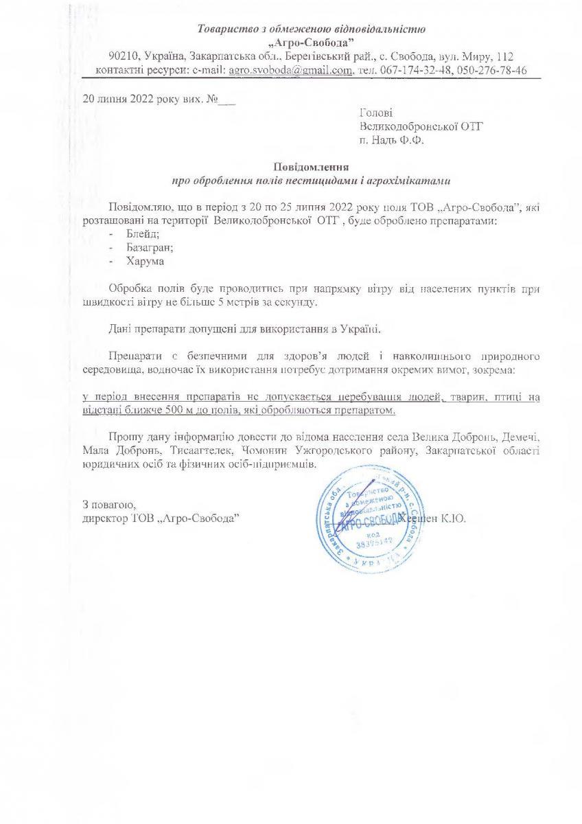 • Вих. лист №б/н. від 20.07.2022 року