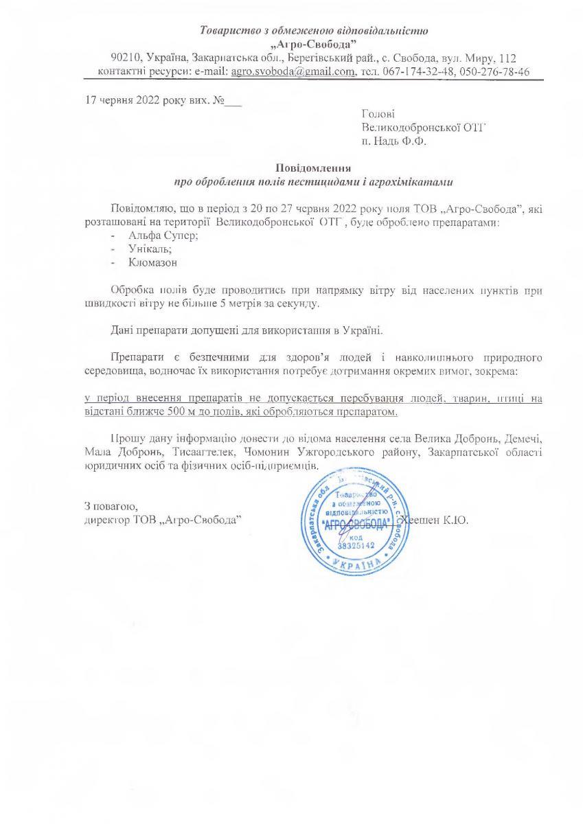 • Вих. лист №б/н. від 17.06.2022 року