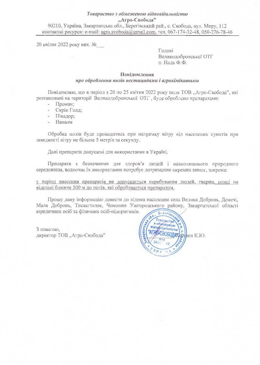 • Вих. лист №б/н. від 20.04.2022 року