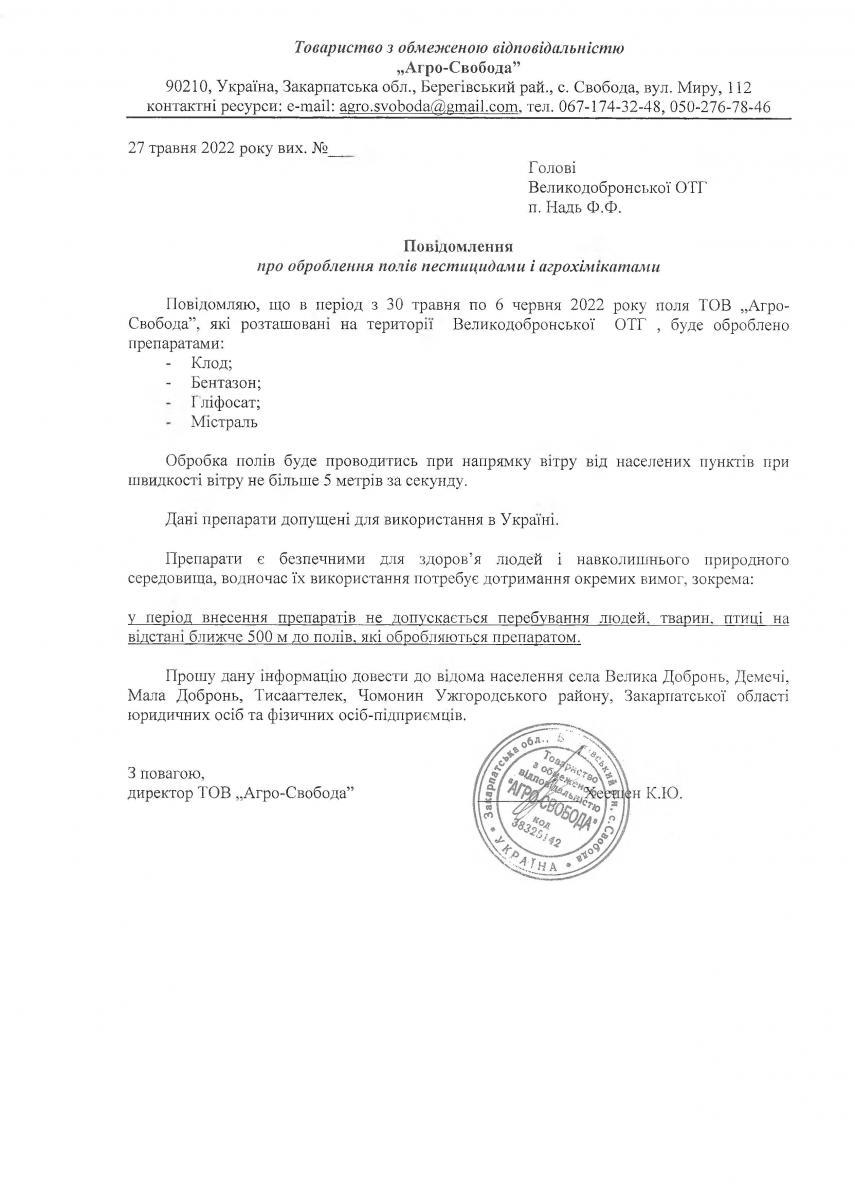 • Вих. лист №б/н. від 27.05.2022 року
