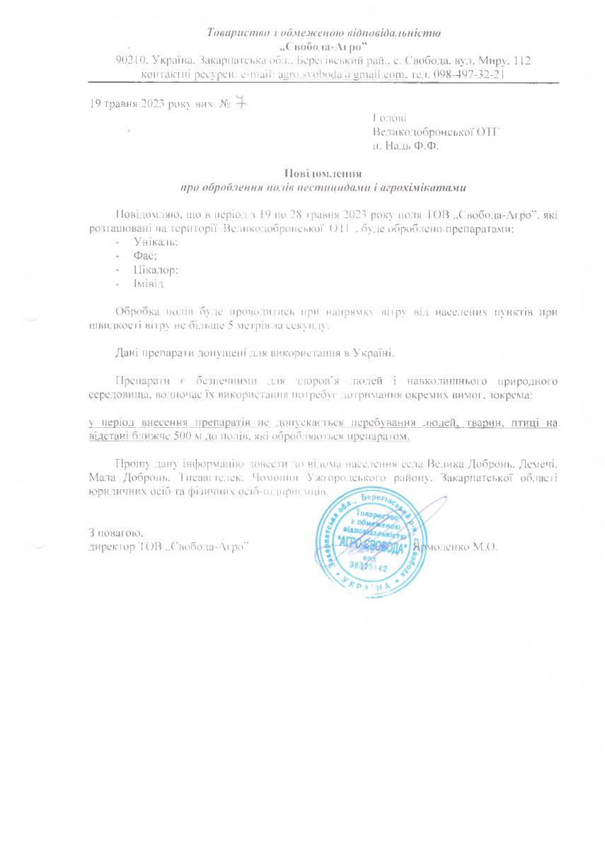 • Вих. лист №7 від 19.05.2023 року