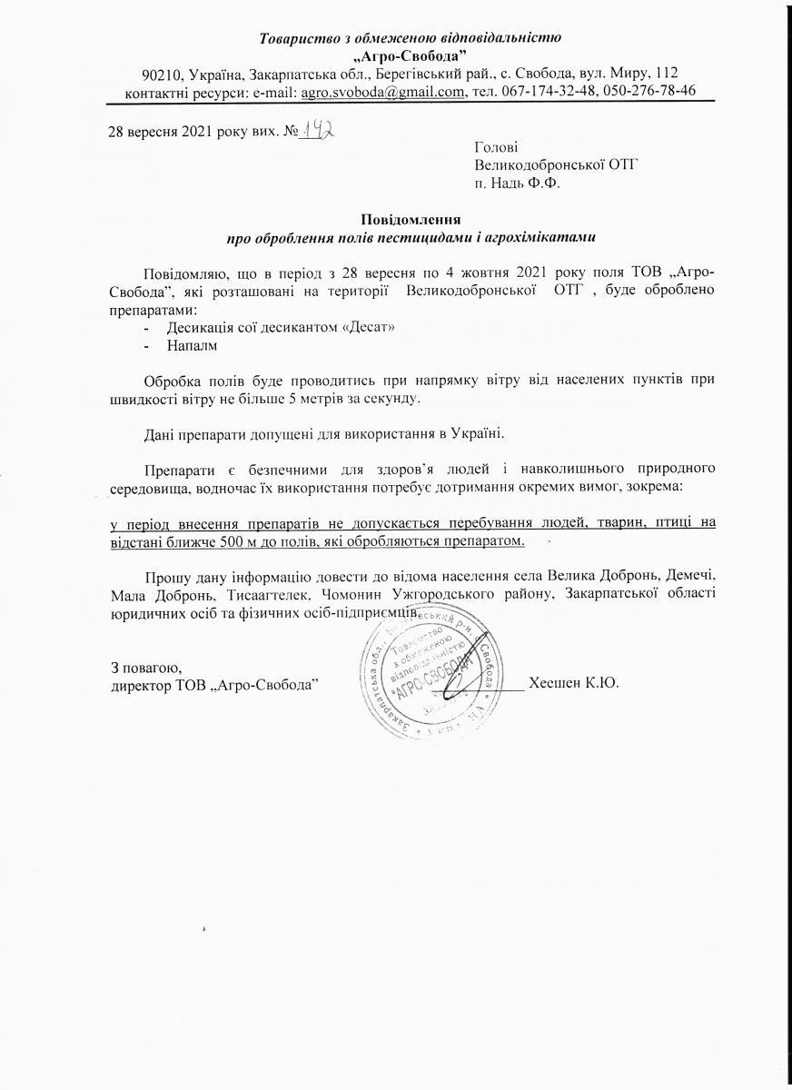 • Вих. лист №142 від 28.09.2021 року
