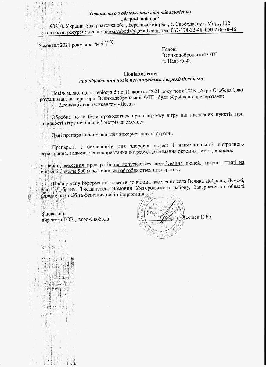 • Вих. лист №148 від 05.10.2021 року